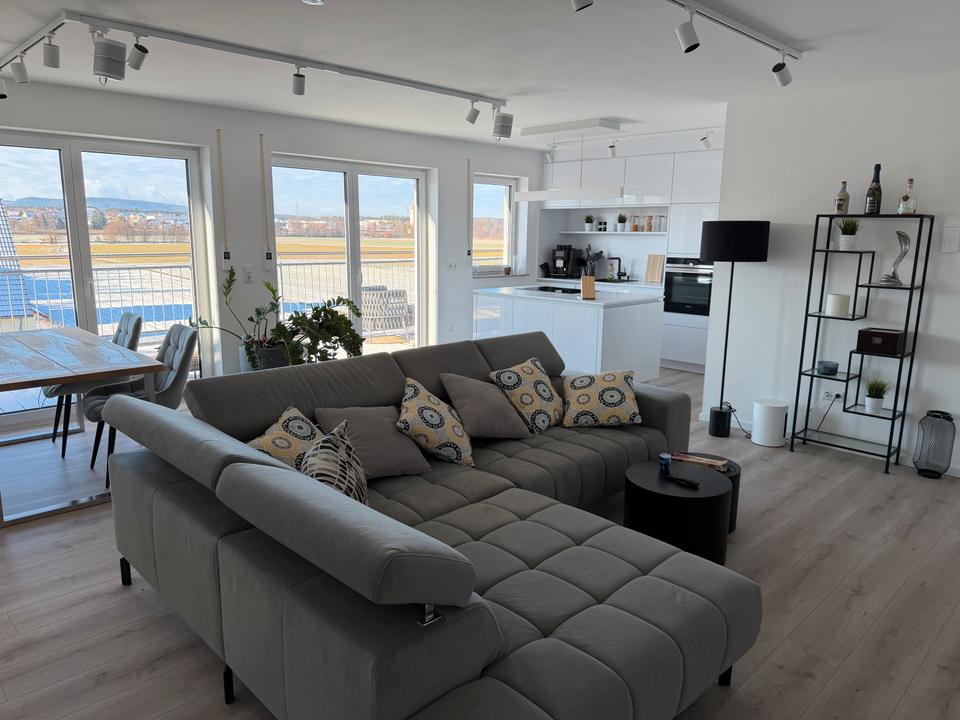 Moderne und absolut neuwertige 3-Zimmer- Penthouse Wohnung mit großer 30 m2 Dachterrasse und hochwertiger Designer Einbauküche. Idyllische Lage mit traumhafter Aussicht.