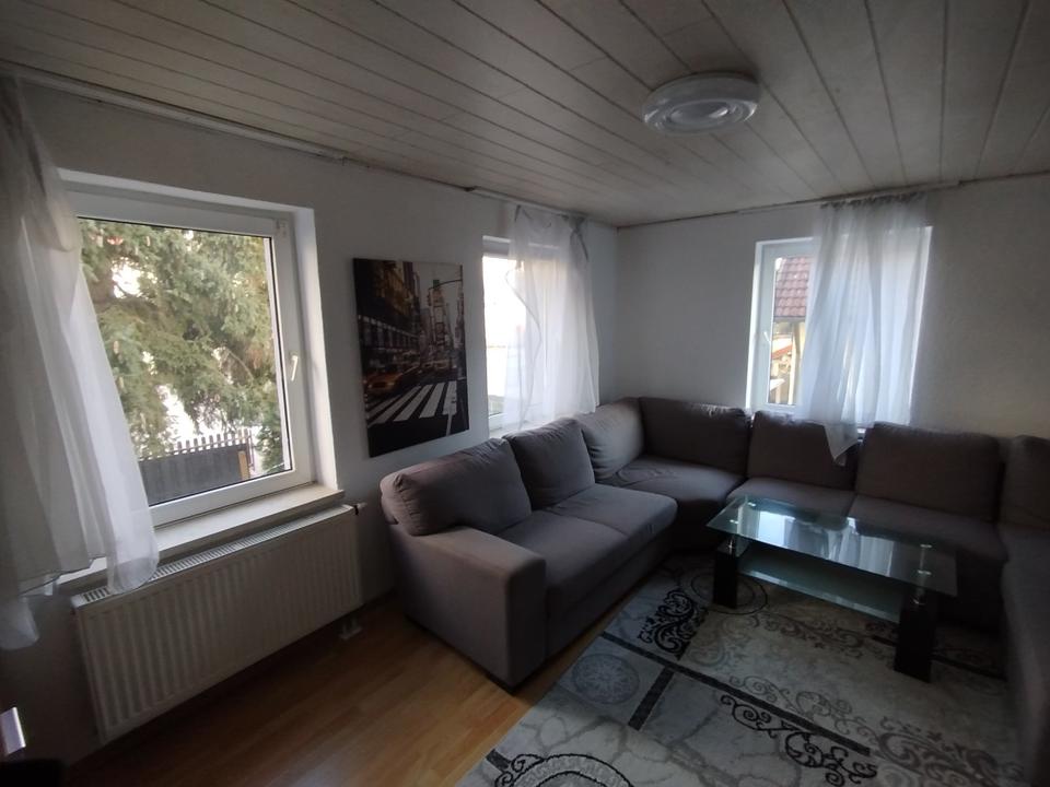 Vermiete eine Wohnung im 1. EG - möbiliert: Waschmaschine, Doppelbett, Schrank, Sofa, Küche, Kühlschrank, Esstisch, Stühle, Kleinmöbel vorhanden. Auf den Bildern ist die Wohnung noch nicht fertig. Fehlende Schränke werden noch eingebaut.