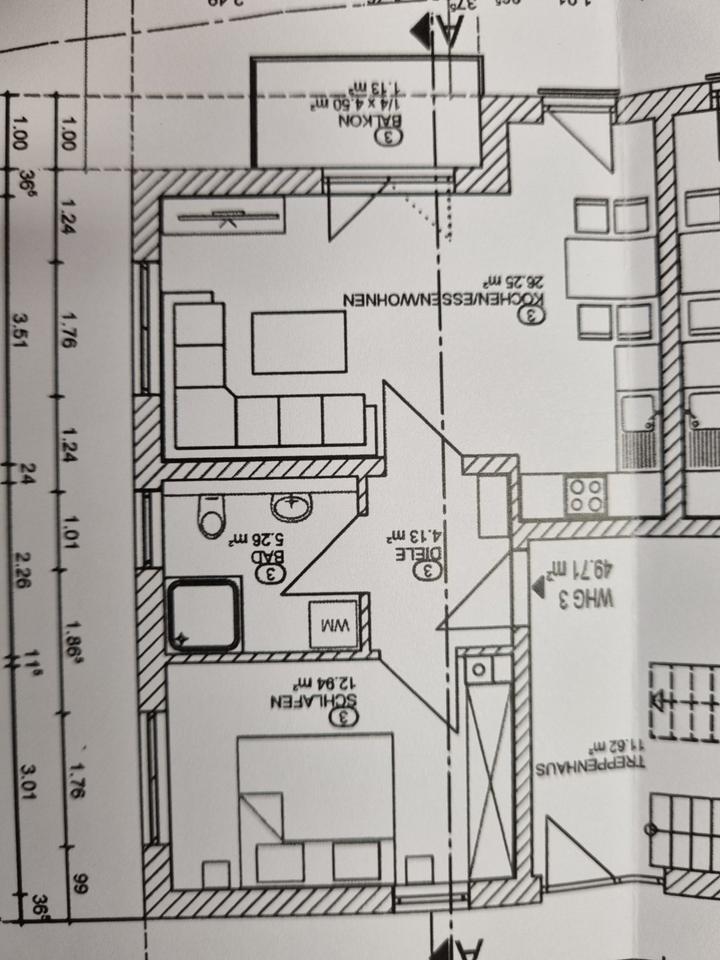 50qm EG-Wohnung mit Balkon , Einbauküche ,