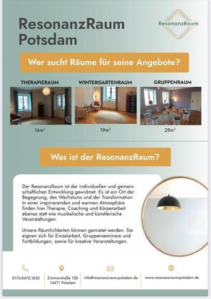 ResonanzRaum, ein Platz der einlädt zum Verweilen und zu mieten. Wir suchen Therapeuten/ Coaches die auf der Suche nach einem Raum sind. Liebevolle Atmosphäre schafft ein wohliges Gefühl bei jeden Einzelnen. Bei...