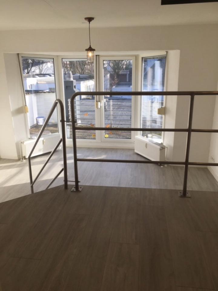 Große bodentiefe Fenster mit Blick und Zugang zur Dachterrasse, Einbauküche auf der Galerie,...