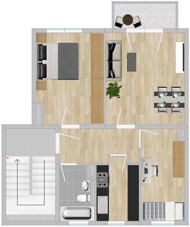 3-Raum-Wohnung, Balkon, Bad mit Wanne und Fenster