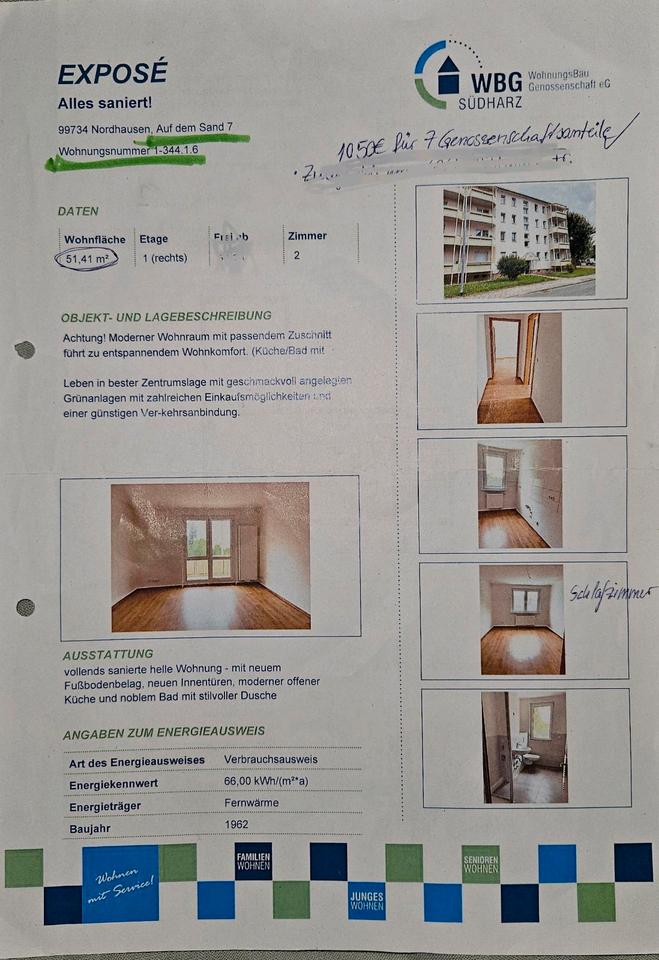 Biete helle Mietwohnung in Nordhausen Unterstadt/Nähe Musikschule. Top Lage, Laufwege zu Einkaufsmöglichkeiten, Apotheke& co.alles in wenigen Minuten erreichbar.