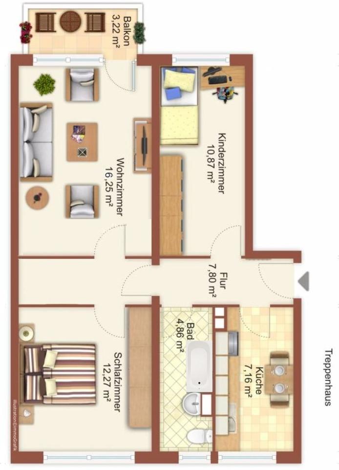 Mehr zum Angebot 3-Raumwohnung 4.OG mit Balkon, WG geeignet: