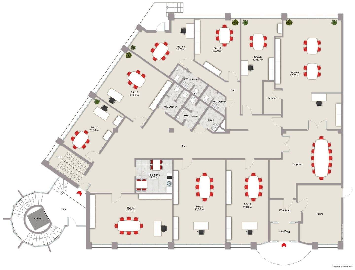 Büro Nr. 2: Dieses vielseitig nutzbare Büro ist Teil einer Büroetage mit 9 Einzelbüros in verschiedenen Größen von 23 m² bis 77 m². Alle Büros nutzen gemeinsam den Flurbereich und die...