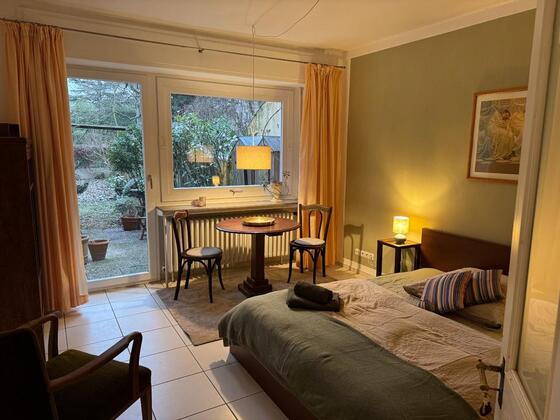 Dieses gemütliche Zimmer (renoviert Januar 2026) liegt zur Gartenseite in der ruhigen Bonner Goethestraße und eignet sich ideal für Einzelpersonen oder Paare. Das bequeme Doppelbett (160 x 200 cm) bietet...