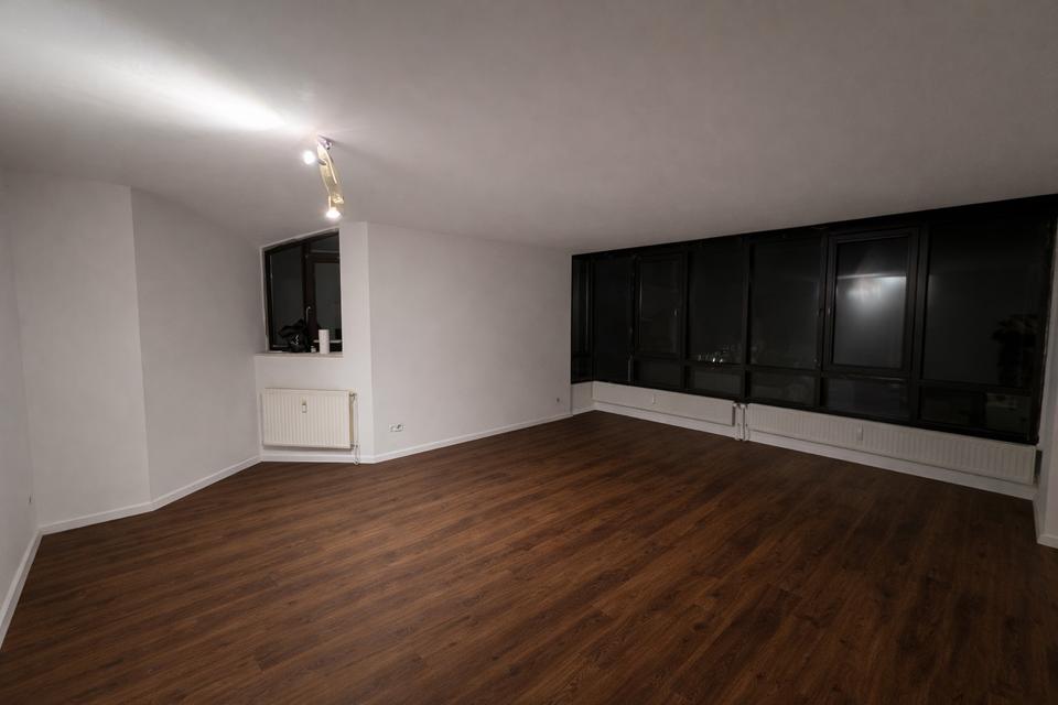 Komplett saniert: neue Wände (gespachtelt & gestrichen), neue Fußböden, modernes Bad.