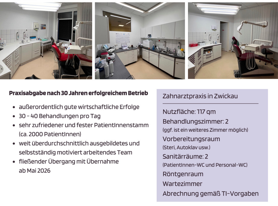 Mehr zum Angebot SCHNELL SEIN Zahnarztpraxis zur Übernahme oder Beteiligung: