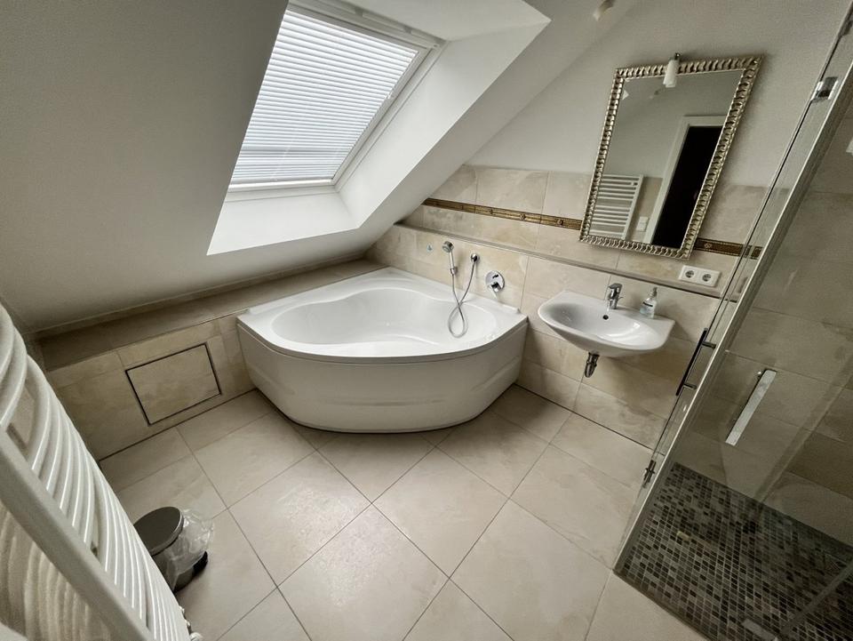 Vermietung möbliert. Nebenkosten incl. Wasser, Müll, Strom und Internet. Dachgeschoss eines Einfamilienhauses (Bj. 2011, Neubaugebiet) mit separater Aussentreppe und Eingang. Offene Gestaltung mit Maisonette Empore (Schreibtisch und Gästebettbereich). Zimmer sind auf Wunsch durch...