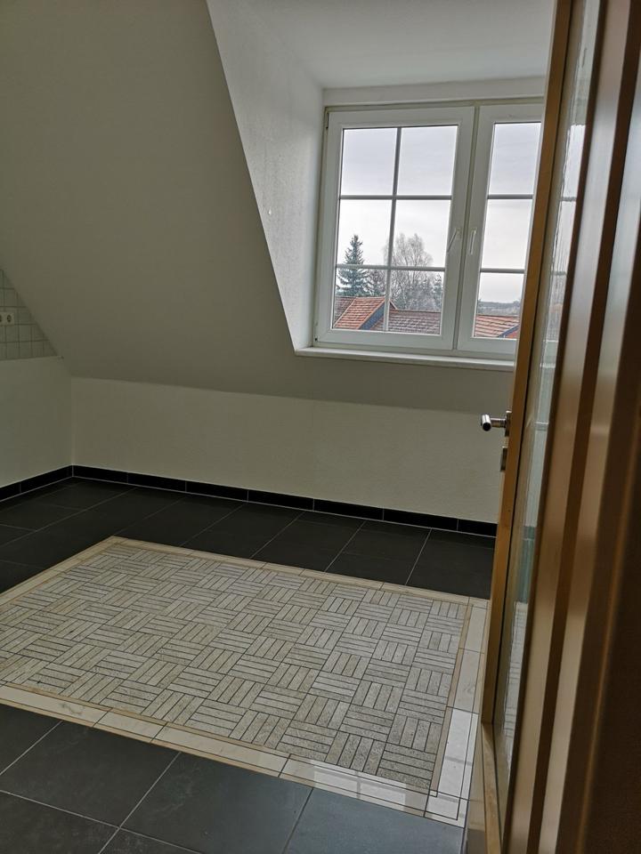 Guten Tag, wir vermieten eine schöne Dachgeschoß-Wohnung mit 63m², 2 Zimmer, Bad, Küche, Flur. Geheizt wird über Fußbodenheizung (Geothermie). Vermietung von privat. Kaution: 748,00 € Formular Mieter-Selbstauskunft über uns erhältlich, vorab der Besichtigung auszufüllen...