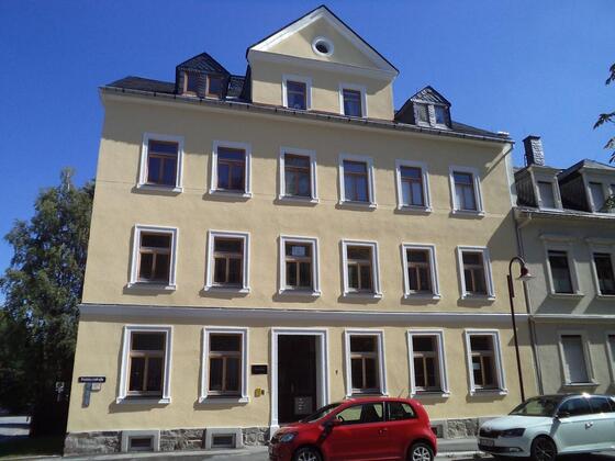 Das Mehrfamilienhaus liegt an der zumeist nur von Anliegern und dadurch nur ganz wenig befahrenen und ruhigen Pestalozzistraße in Schlettau. In der näheren Umgebung sind ausreichend kostenlose Parkplätze vorhanden. Die Wohnung liegt in der 2....
