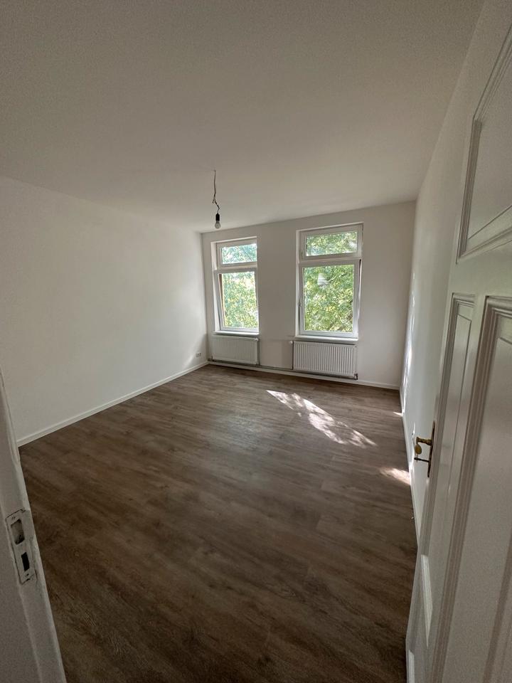 Das Zimmer ist 15 qm groß und unmöbiliert. Durch die Fenster ist das Zimmer relativ Hell und besitzt duch den Baum etwas Sichtschutz.