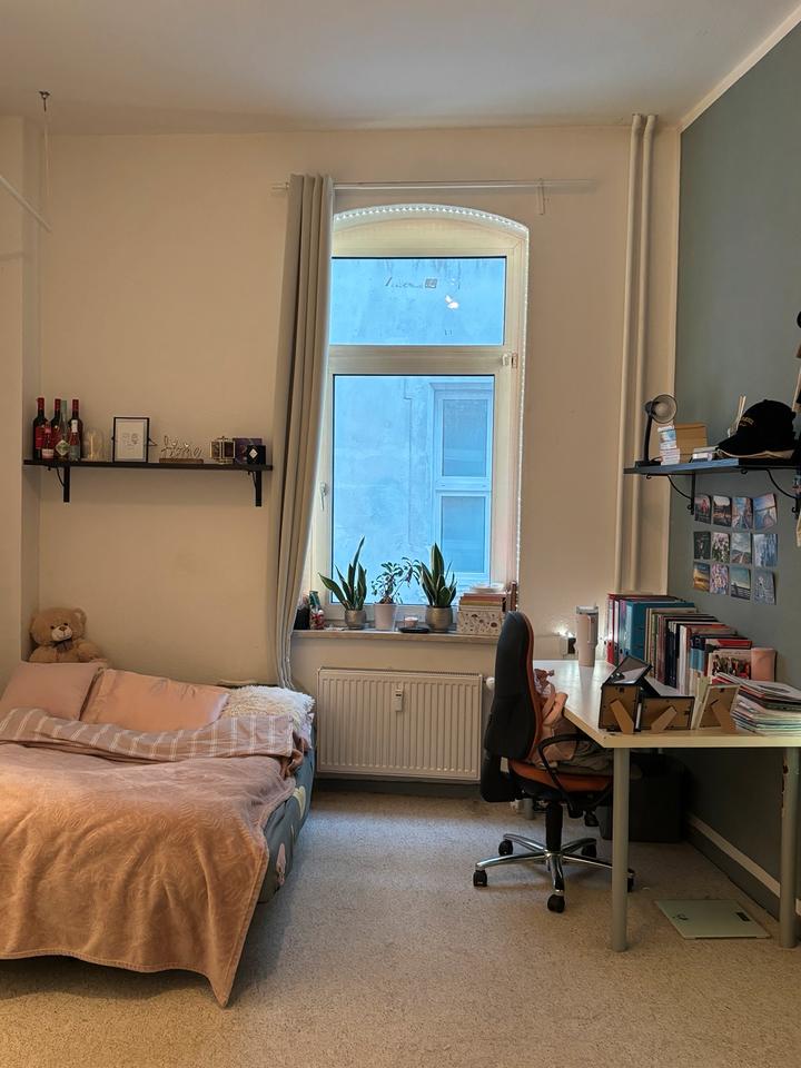 Mein Zimmer ist 17 m2 groß, hell durch ein Fenster. wird möbliert vermietet. Ich lasse mein Schlafsofa und eventuell meinen sowie die beiden IKEA-Schränke stehen und dafür verlange ich 130 €.