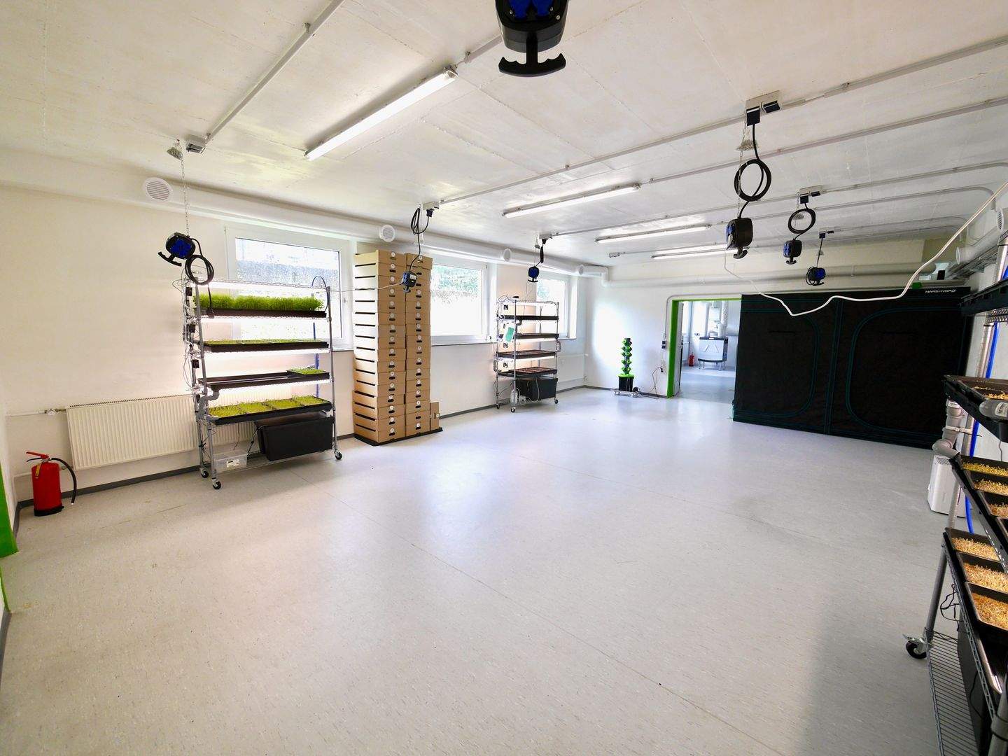 Helle Gewerbeflächen mit flexibler Nutzung, beispielsweise als Büro, Produktionsfläche, Lager, Ausstellungsfläche oder Verkaufsraum nutzbar. Deckenleuchten und teilweise Klimaanlagen/Lüftungsanlage sowie Strom- und Wasseranschlüsse sind bereits vorhanden.