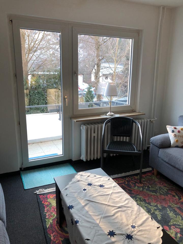 Voll eingerichtet, ruhiges Haus, auch für pendler, 60 qm, Balkone, EG Hochparterre, neu renoviert, Teppich Boden, pvc Boden nur Flur u. Küche, Wände Feinputz.