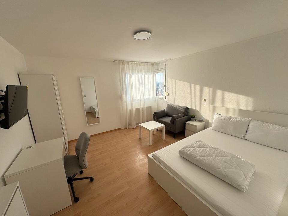Ausstattung: • Möbliertes Zimmer (Bett, Schrank, Schreibtisch,TV) • Ausgestattete Küche • Bad + separates...