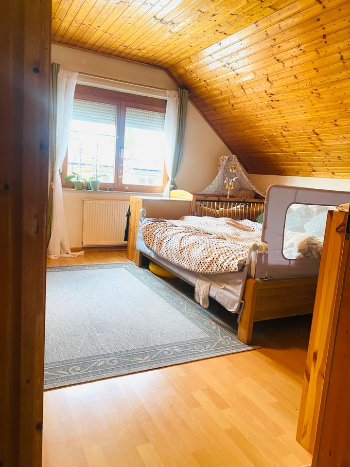 Im Zimmer bleibt ein Bett (2,20x2,00m), ein Kleiderschrank und ein Schreibtisch.
