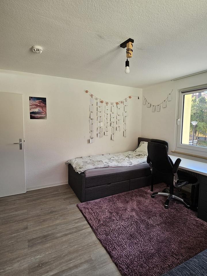 Zimmer Das Zimmer ist Teil einer neu gegründeten WG und bietet eine angenehme Größe mit guter Raumaufteilung. Durch das Fenster kommt viel Tageslicht herein, wodurch der Raum hell und freundlich wirkt....