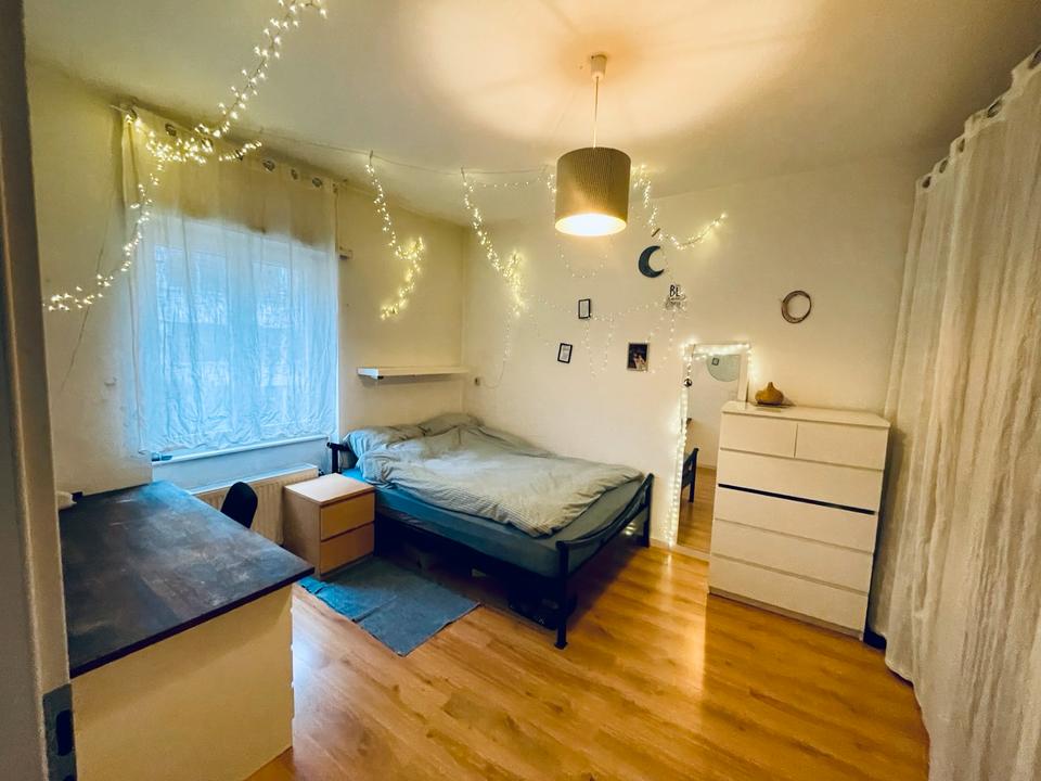 Dein 16-18qm Zimmer ist bereits möbliert (Bett, Schrank, Schreibtisch). Die Möbel können für 200 € (VB) übernommen werden.
