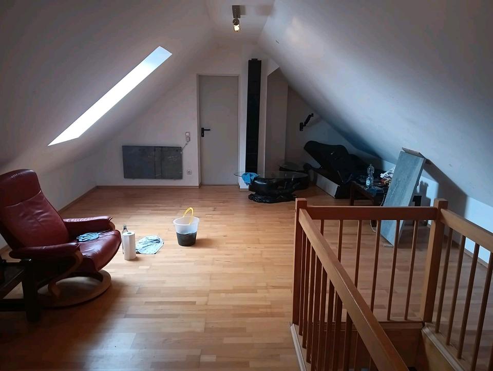 Das Zimmer ist 32m2 groß und befindet sich im oberen Teil der Maisonette Wohnung. Es sind verschiedene Couchtische sowie eine Couch und ein sehr gemütlicher Sessel vorhanden die übernommen werden...