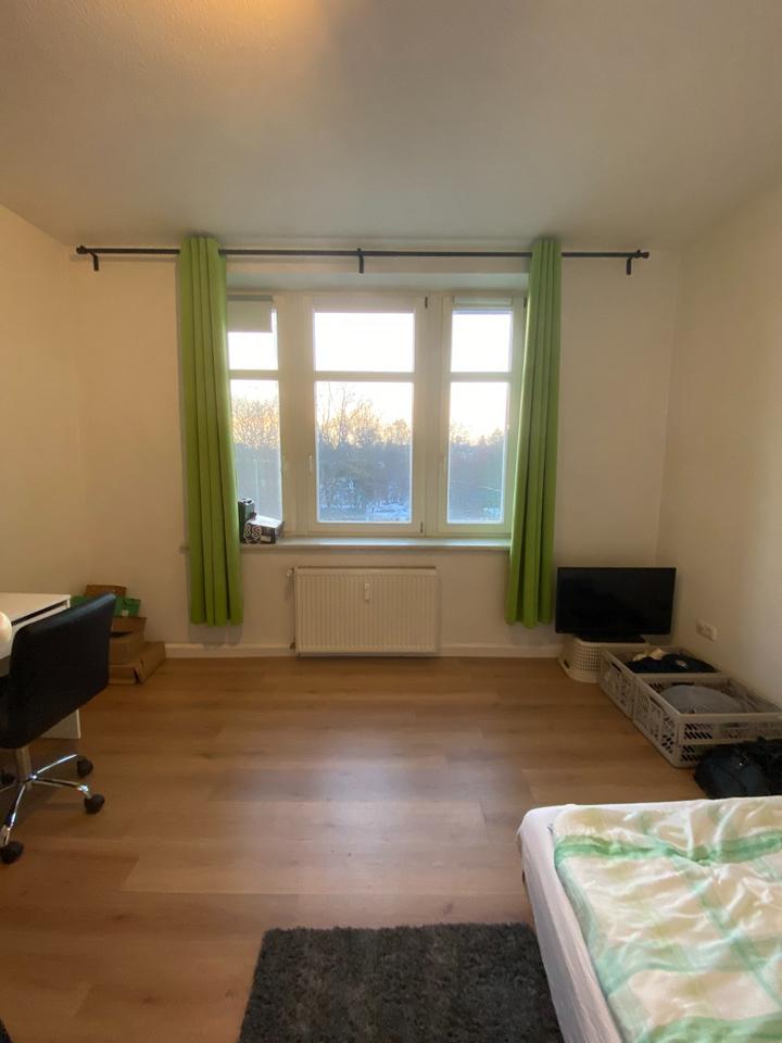 Das schöne, helle WG-Zimmer ist ca. 15 qm groß und überzeugt durch große Fenster mit Doppelverglasung, die für viel Tageslicht und eine angenehme Wohnatmosphäre sorgen. Der rechteckige Schnitt ermöglicht eine...