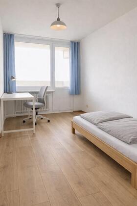 Das Zimmer ist hell, gut geschnitten und bietet problemlos Platz für Bett, Schreibtisch und Stauraum. Ein echtes...