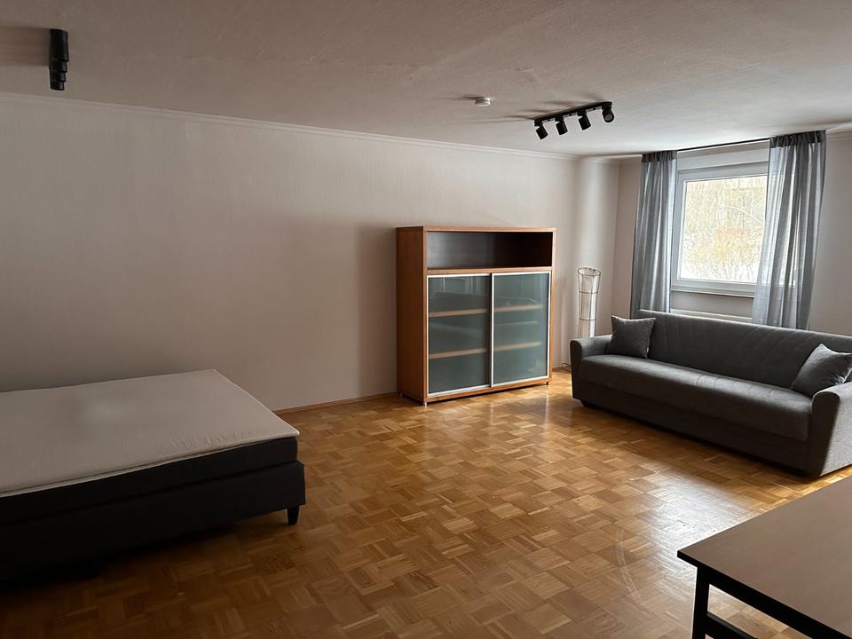 Sehr großes WG-Zimmer, für 2 Personen geeignet, 33qm plus 36qm Gemeinschaftsbereich, neue Küche, Balkon, Schwimmbad und Sauna im Haus, zentrale Lage beim Volksfestplatz. 550€ Kaltmiete inklusive Möblierungszuschlag, zuzüglich 140€ (Nebenkosten, Strom,...