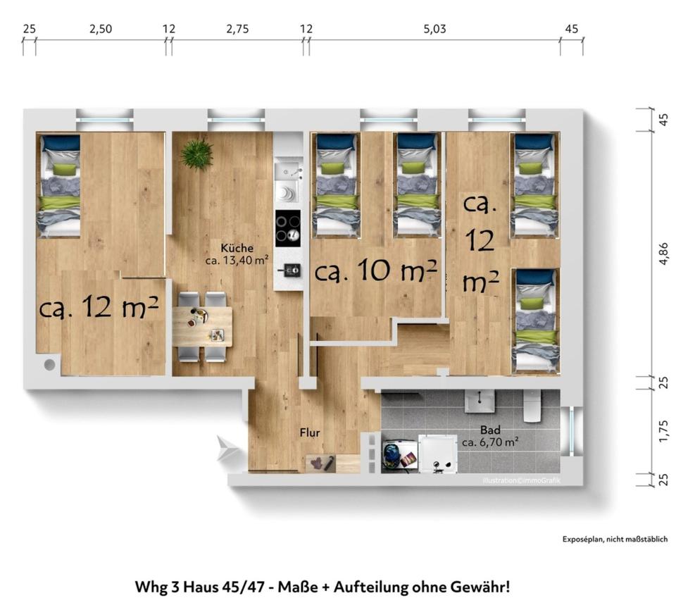Variante 1 = WG Zimmer für 1 Person ca. 10 qm = 350 € incl. Nebenkosten