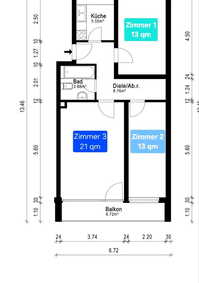 ca. 13,00 m²