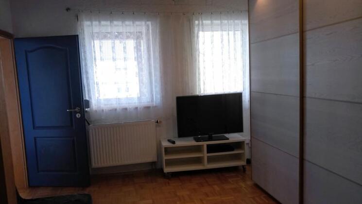 Helle OG Wohnung mit traumhafter Waldrandlage, Essküche(komplett eingerichtet mit allen E-Geräten wie: Mikrowelle,Backofen,Herd, Wasserkocher, Kaffeemaschine,Bügeleisen und - brett), Wohnschlafraum mit 1 Doppelschlafsofa ein Zustellbett möglich, 42" Fernseher, Schlafzimmer mit Doppelbett...