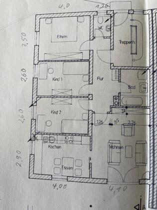 Erdgeschoss Wohnung zu vermieten für 2-3 Personen in 86643 Rennertshofen ca. 81 qm, Balkon 4 Zimmer, Küche, Bad, WC getrennt, Gartenanteil, Kellerraum und Stellplatz Aufteilung siehe Foto vom Grundriss Zentralheizung keine Haustiere Frei voraussichtlich ab 01.05.2026