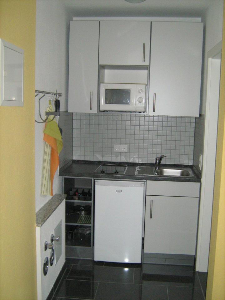 In einem 2 Familienhaus 1 Zimmerwohnung mit Küchenzelle, Dusche, WC und Waschbecken. Komplett eingerichtet.