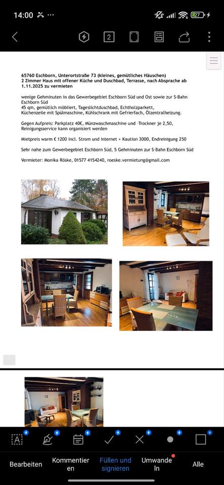 Ich suche einen Nachmieter für 2 Zimmer Wohnung in Eschborn ab den 01.02.2026 die Miete kostet proschal 1250 mit Strom und Internet inclusive.