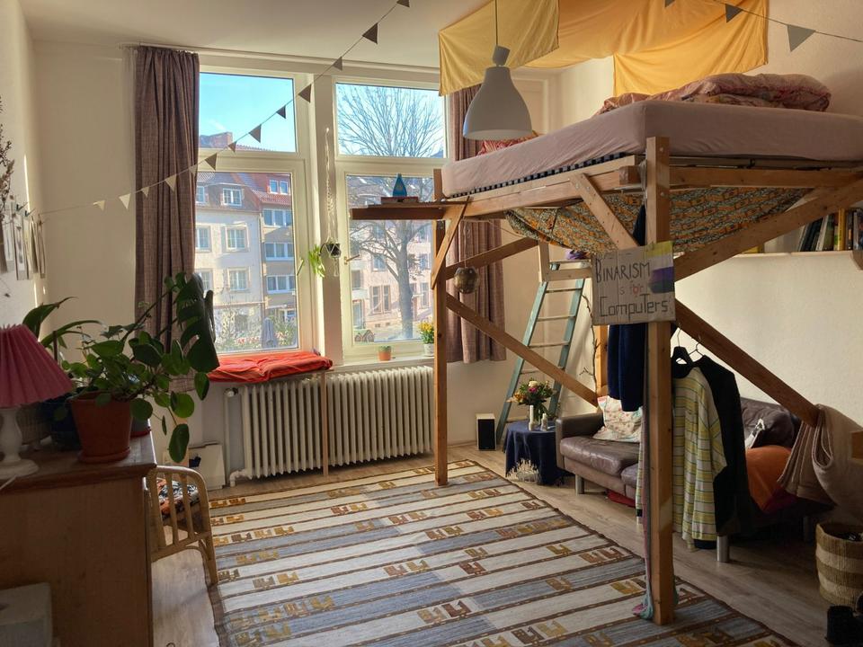 Hier erwartet Dich ein großes helles Zimmer Mitten in der Innenstadt von Hildesheim. Die Entfernung vom Bahnhof beträgt nur 4 Gehminuten. Du hast quasi alles vor der Haustür. Die WG an...
