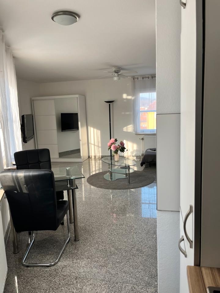 Möblierte helle Wohnung auf Zeit zu vermieten. Allergikerfreundlich, voll ausgestattet, Waschmaschine und Trockner im Keller. Ruhige Lage im Zentrum von Gaggenau in der Schulstrasse. Modernes Bad mit Regendusche. Kleine Küchenzeile, perfekt...