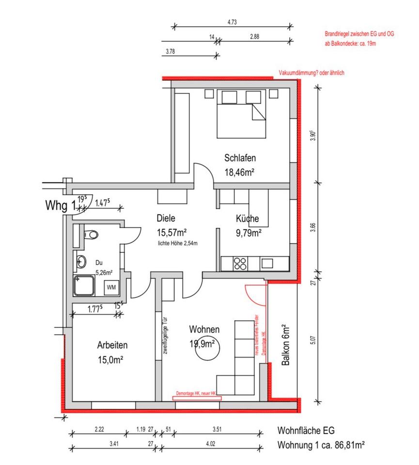 3-Zi-Whg, Küche, Du/WC, Balkon, Einbauküche ca. 86,9m²