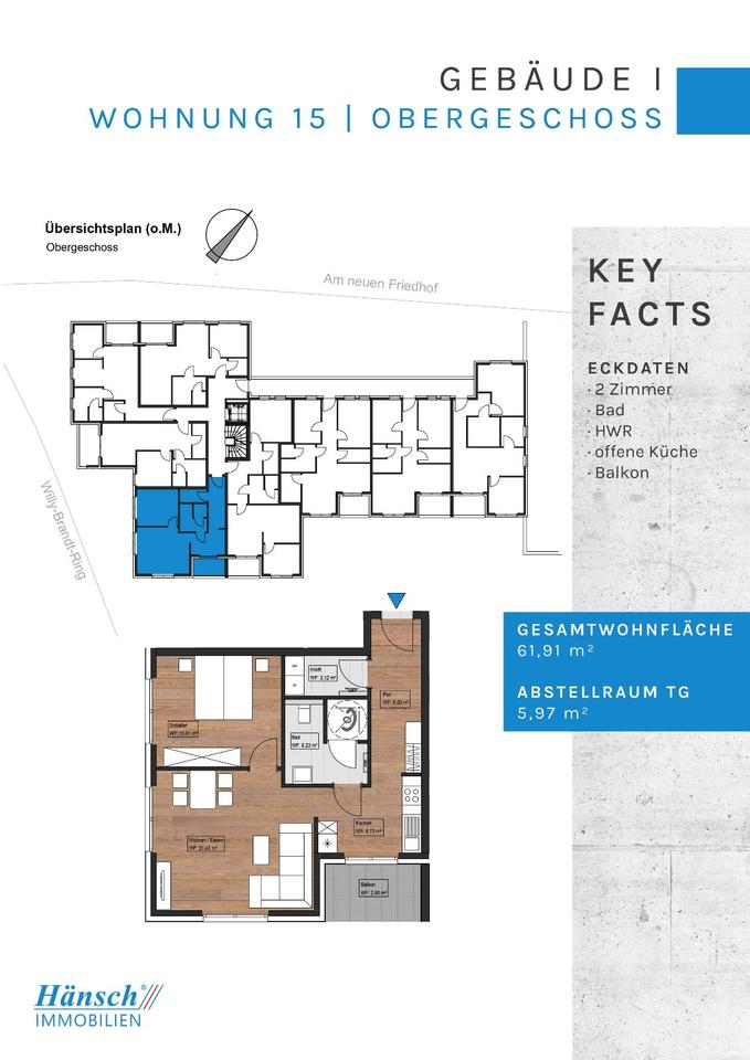 An der Wilhelmshöhe in zentrumsnaher Lage von Lingen ist ein moderner Gebäudekomplex mit insgesamt 29 energieeffizienten Mietwohnungen auf 3 Etagen und einer Tiefgarage entstanden.