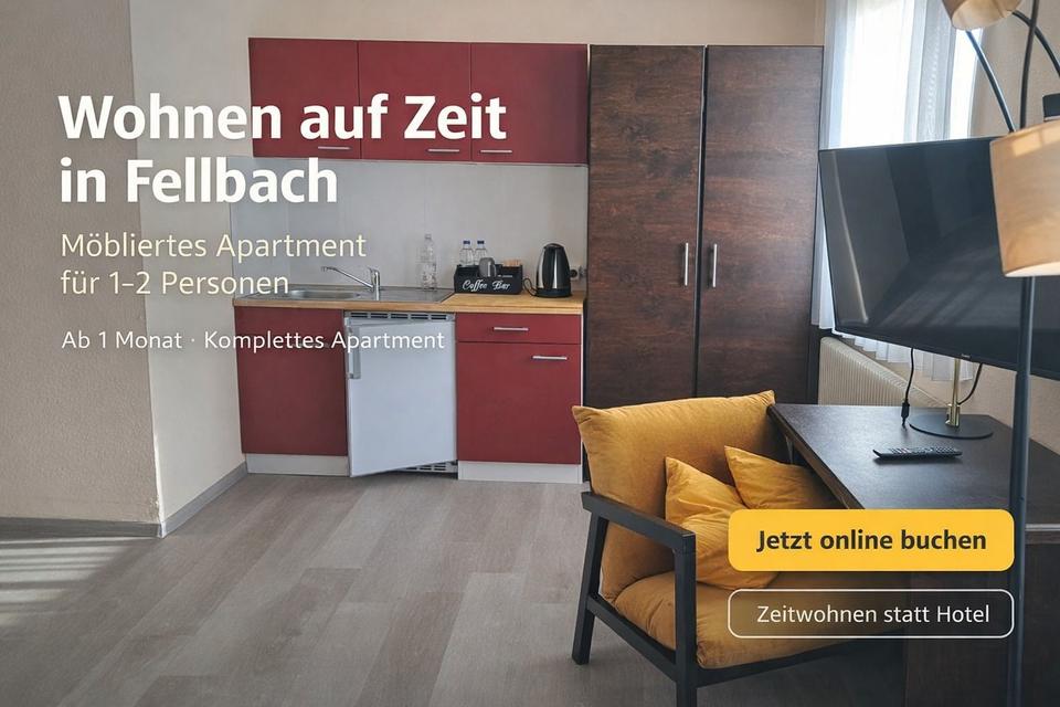 # Objektbeschreibung Wohnen auf Zeit in Fellbach – 1-Zimmer-Apartment für 1–2 Personen