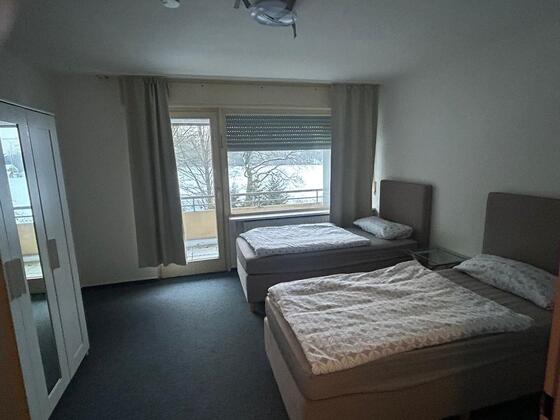 Apartment 1 Möblierte Zimmer m. Bett Schrank und Balkon frisch bezogen Eigene Dusche+WC 2 Schlafzimmer für bis zu 4 Personen 1 Zimmer davon mit Balkon 1 Wohnzimmer mit...
