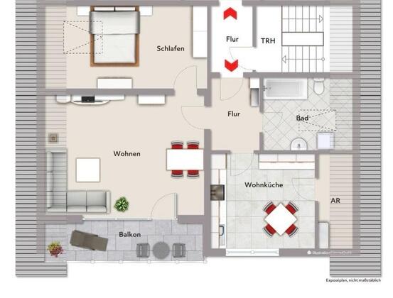 Mehr zum Angebot 2-Zimmer Dachgeschosswohnung mit Balkon & schöner Aussicht:
