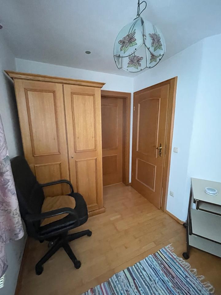 Das Zimmer hat ein eigenes Bad mit Dusche und ist möbliert.
