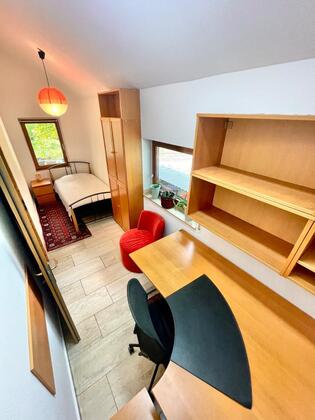 Ich vermiete ein gepflegtes, möbliertes Zimmer im Erdgeschoss in unserem ruhig gelegenen Haus in Erkrath – direkt am Naturschutzgebiet Bruchhausen.