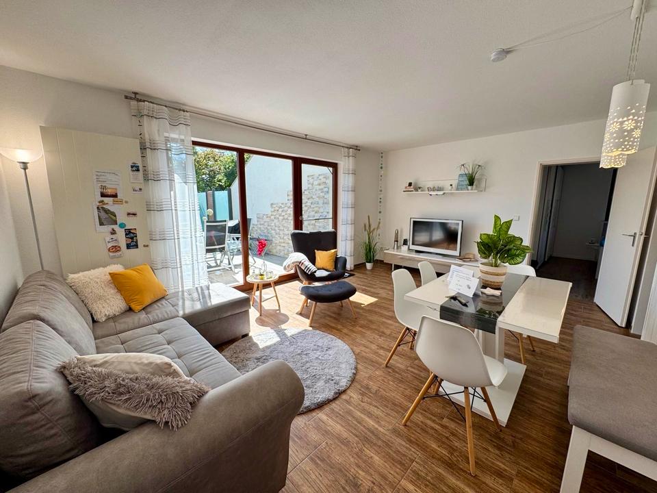 2 Zimmer Allensbach Bodensee Ferienwohnung möbliertes wohnen mit Hund, Terrasse, eigener Garten kniehoch umzäunt.