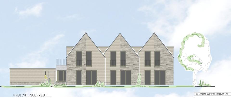 Zu August 2026 wird eine ca. 100 m² 3-Zimmer-Wohnung im Obergeschoss eines KfW 40-Neubaus zum Erstbezug fertig.