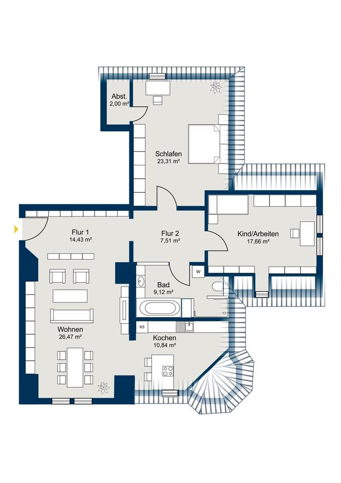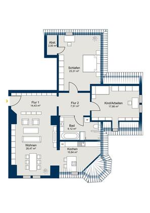 # Objektbeschreibung Exklusive, kernsanierte 3-Zimmer-Dachgeschosswohnung im denkmalgeschützten Gebäude – ein Zuhause mit Charakter und Qualität!
