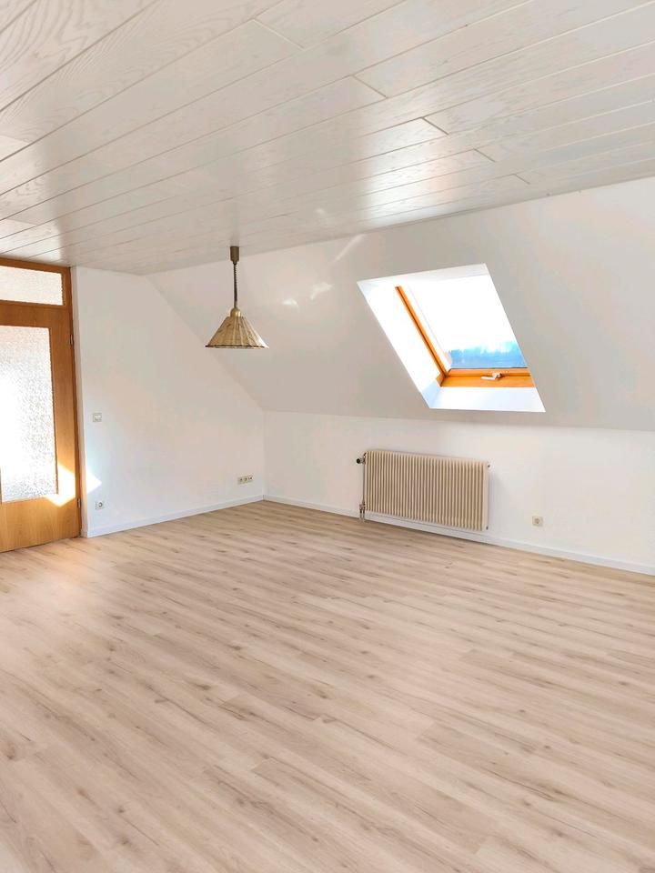 Schöne helle 3,5 Zimmer-Wohnung im Dachgeschoss in einem Zweifamilienhaus mit schöner Aussicht Zentral-Ölheizung Wohnzimmer mit großem Balkon Bad mit Fenster, Dusche und Badewanne Schlafzimmer Seperates Schlafzimmer mit Bad und Dusche gemeinsamer Waschraum keine Haustiere Nichtraucher Führerschein erforderlich ruhige Lage paar...
