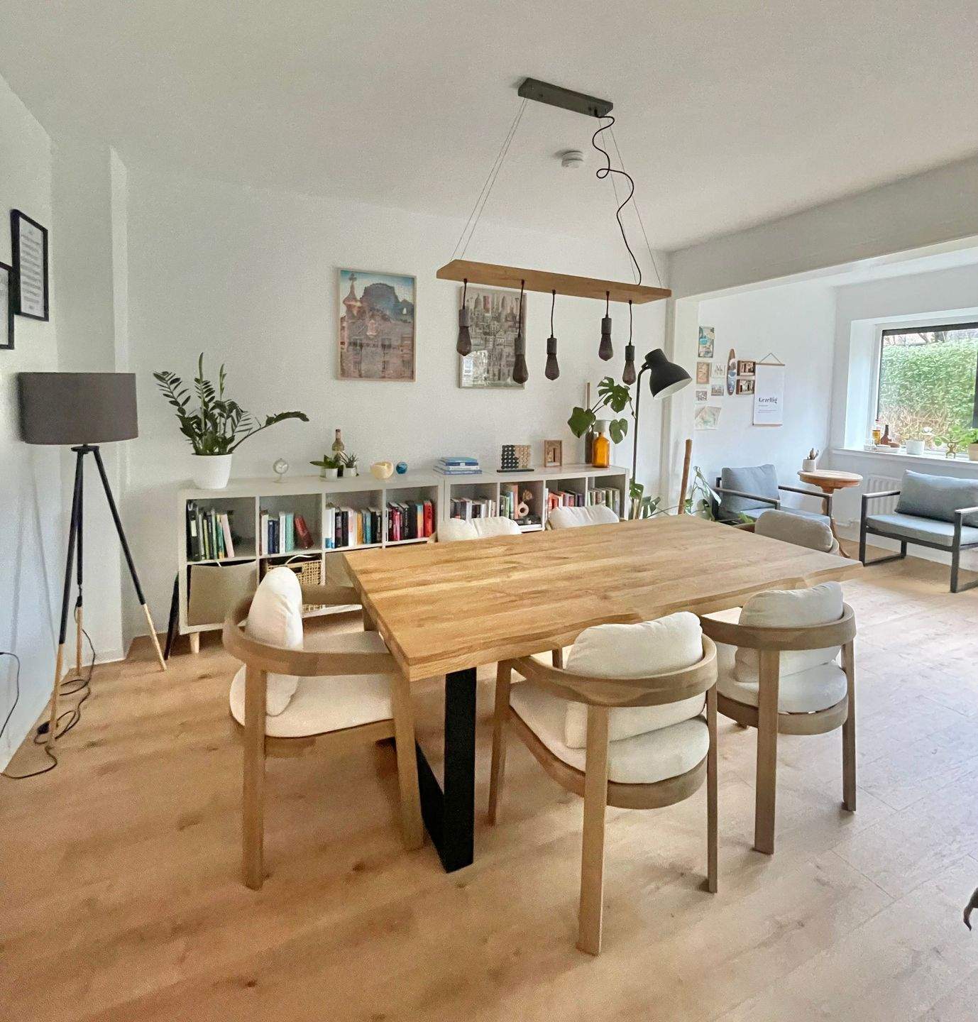 Das helle Wohnzimmer bietet dank großer Fensterflächen eine...
