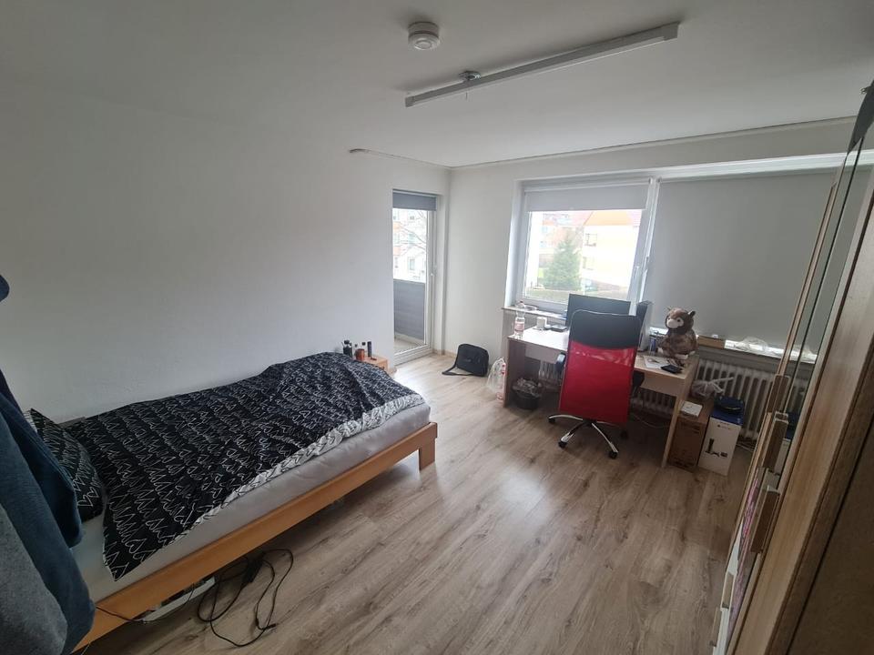 Ein möbliertes Zimmer wird in einer Wohngemeinschaft mit insgesamt 3 Personen vermietet. Die Wohnung verfügt über ein gemeinsames Wohnzimmer mit Balkon. Sowohl die Wohnung als auch das Zimmer sind vollständig möbliert.