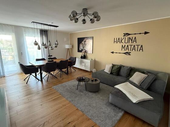 Diese stilvoll eingerichtete und vollständig möblierte 3-Zimmer-Wohnung mit ca. 85 m² Wohnfläche bietet höchsten Wohnkomfort und eine großzügige Terrasse mit ca. 30 m² – perfekt für entspannte Stunden im Freien.