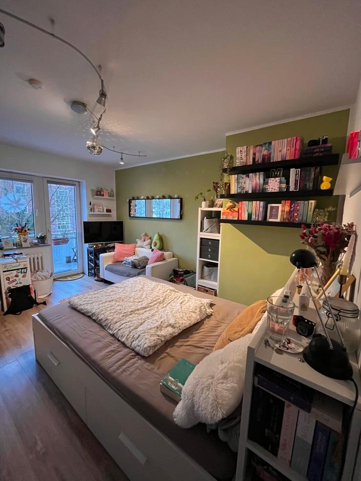 Wohnen würdest du in einem schönen hellen Zimmer mit direktem Balkonanschluss. Der Balkon wird von der gesamten WG genutzt und bepflanzt. Das Zimmer ist 17 qm groß und rechteckig geschnitten,...